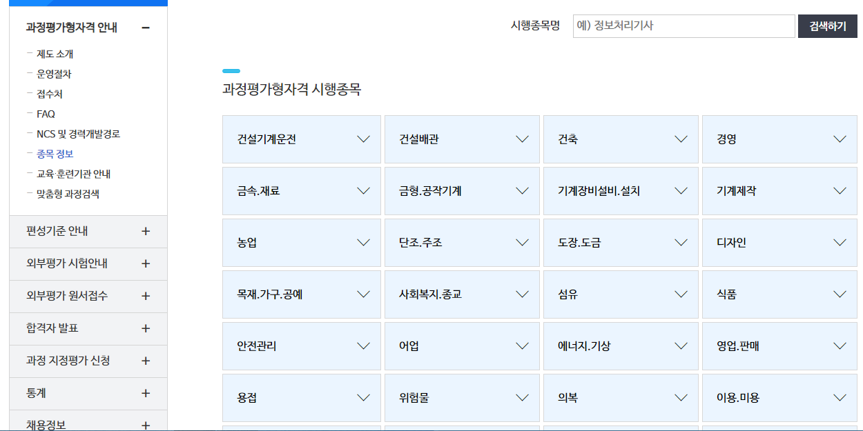 자격증 종목 종류