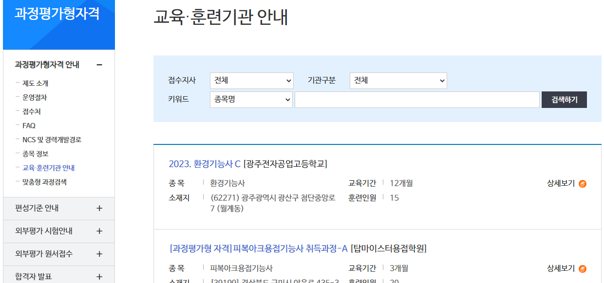 본인이 원하는 시험종목의 훈련기관이 어디 어디 있는지 미리 검색해보셔야 합니다.