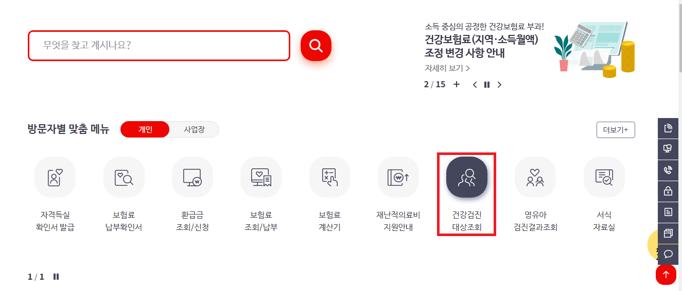 1. 국민건강보험공단 홈페이지 접속합니다.