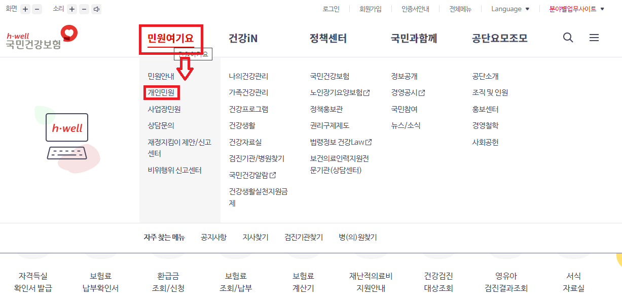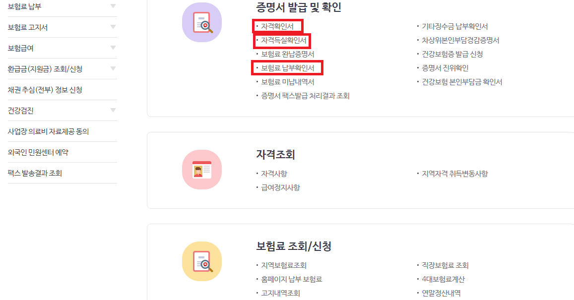 건강보험 관련 서류는 아래 건강 IN 홈페이지를 통해 발급받을 수 있습니다.