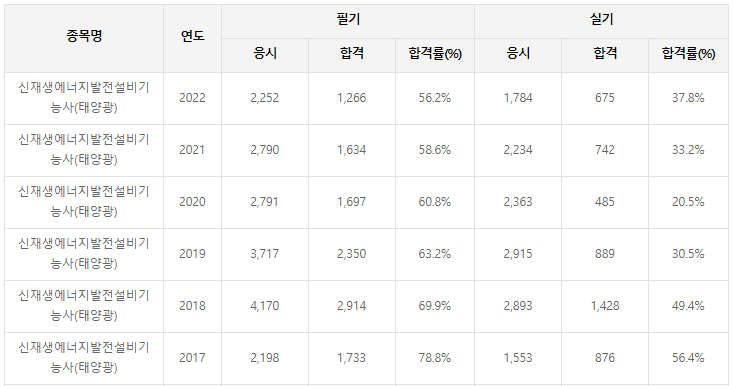 필기합격률은 50% 이상으로 높은 편에 속하나 매년 갈수록 합격률이 떨어지고 있는 것을 확인해야 합니다. 올해 낸년에는 조금 더 떨어질 수도 있다는 것을 생각하고 필기대비를 하셔야 할 것 같습니다. 실기합격률도 30%대로 높은 편은 아닙니다.