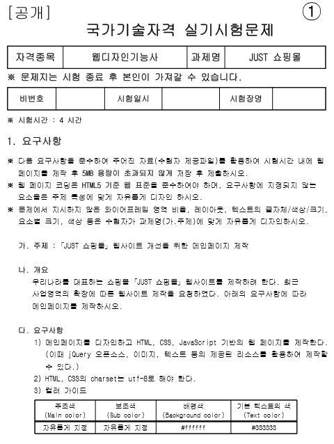 실기 : 웹디자인 실무작업 (작업형 4시간 정도)