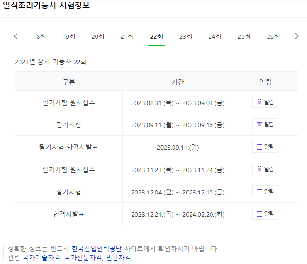 조리기능사 자격증은 상시시험이긴 하지만 그만큼 인기가 많기 때문에 본인이 원하는 날자에 시험을 치고 싶으시다면 미리미리 원서접수를 준비하셔야 합니다.