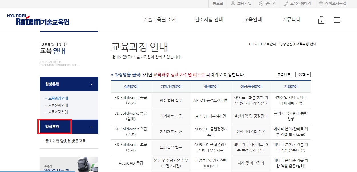 3. 왼쪽 사이드바에 양성훈련 클릭
