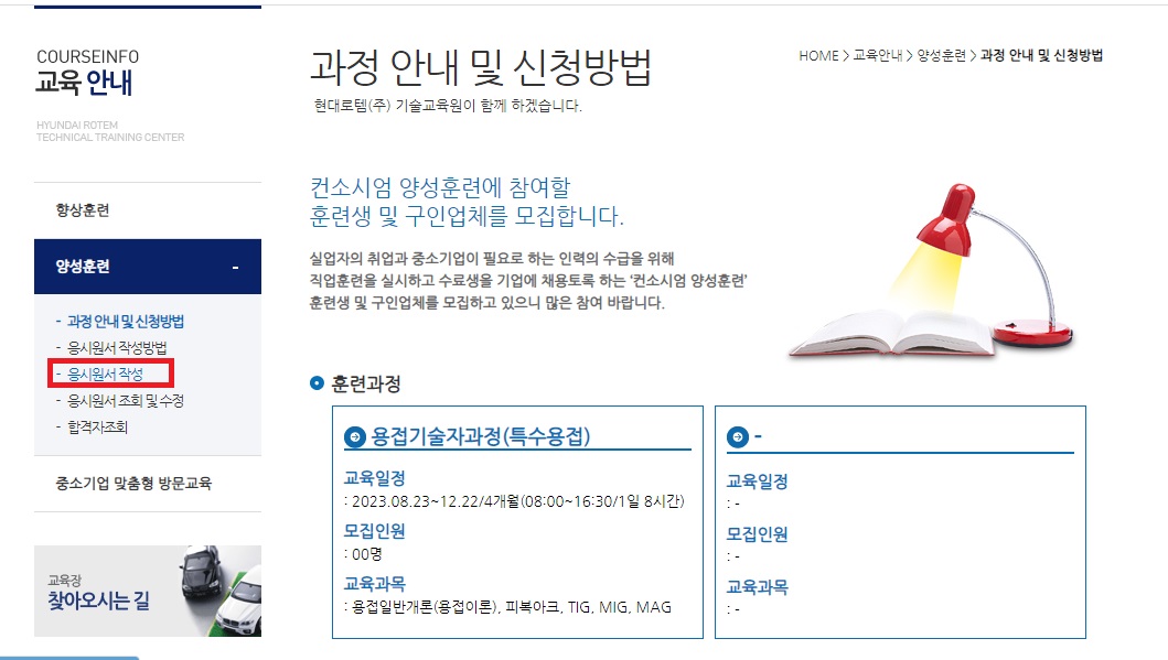 현대로템 기술교육원은 취업예정자에게 용접기술을 교육하고 있으며, 우수인력수급에 어려움을 겪고 있는 중소기업과 상생하는 직업훈련을 제공하고 있습니다. 이렇게 좋은 교육과 취업 알선까지 하고 있습니다. 지금 바로 신청해 보세요