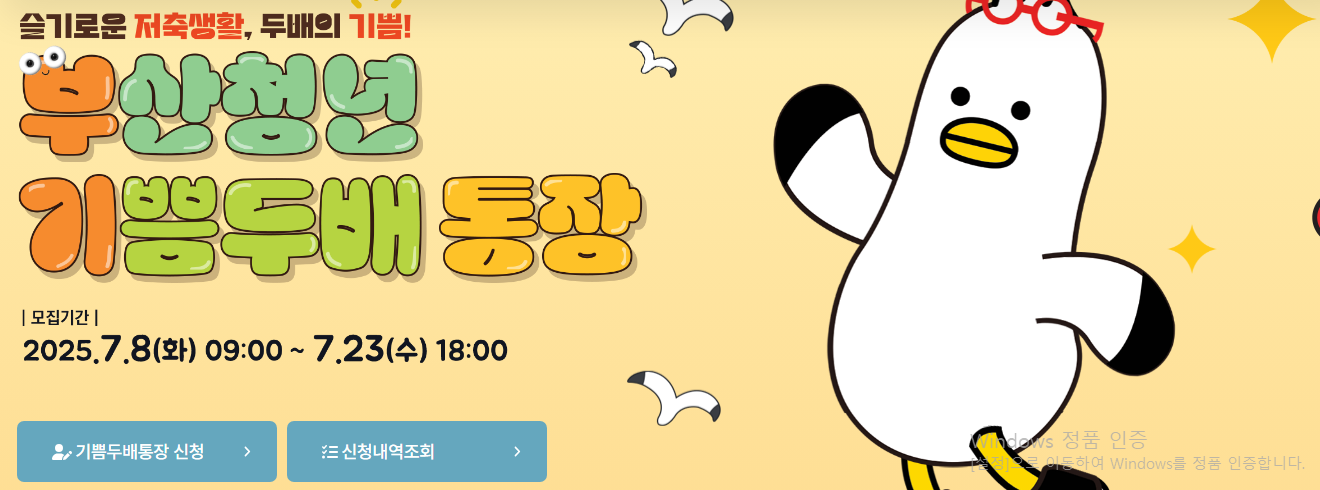 2025 부산청년 기쁨 두 배통장을 이용해서 월 10만 원 저축으로 최대 720만 원이라는 혜택을 꼭 누리시길 바랍니다. 지원 대상을 잘 확인하시고 조건에 충족하다면 신청을 하지 않을 이유가 하나도 없습니다. 무조건 해야만 합니다.