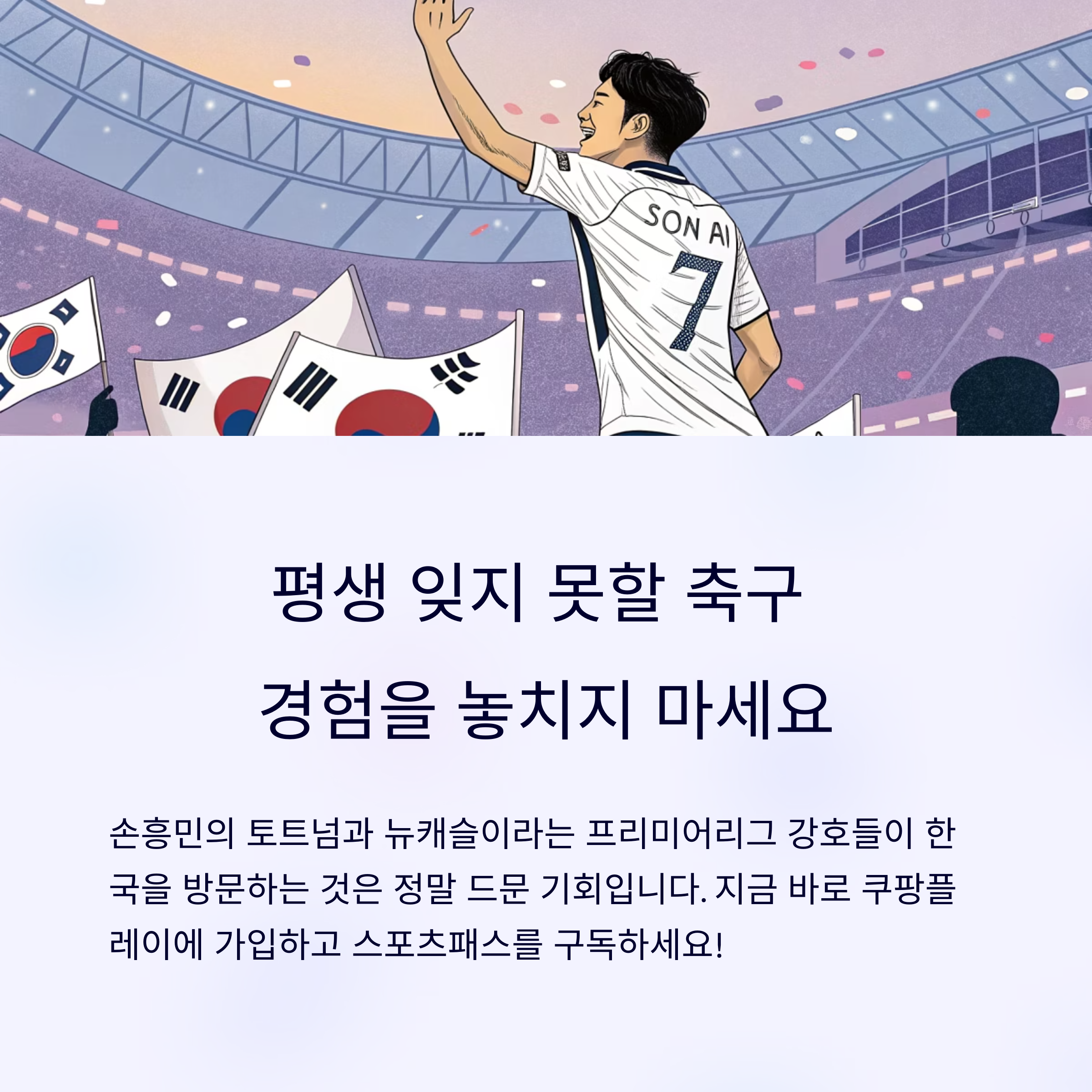 축구 팬들이 기다려온 빅 이벤트가 드디어 확정되었습니다. 2025년 여름, 손흥민이 소속된 토트넘과 프리미어리그 강호 뉴캐슬이 한국을 방문합니다. 지금 바로 쿠팡플레이에서 티켓을 예매하고 세계 최고 수준의 축구를 직접 경기장에서 관람하는 특별한 경험을 놓치지 마세요!